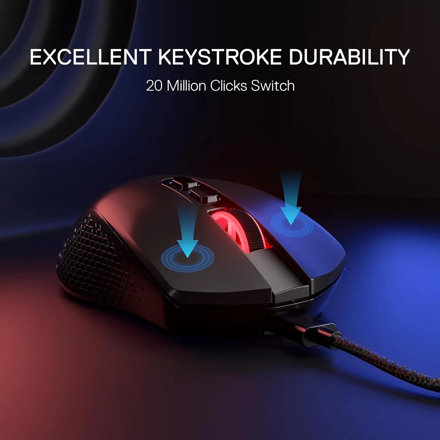 Extra Durability - Built to last, M695 gaming mouse features ultra-durable switches rated for over 20 million clicks, ensuring reliable performance through countless battles. Whether in fast-paced gaming or long work sessions, every click feels crisp, responsive, and consistent