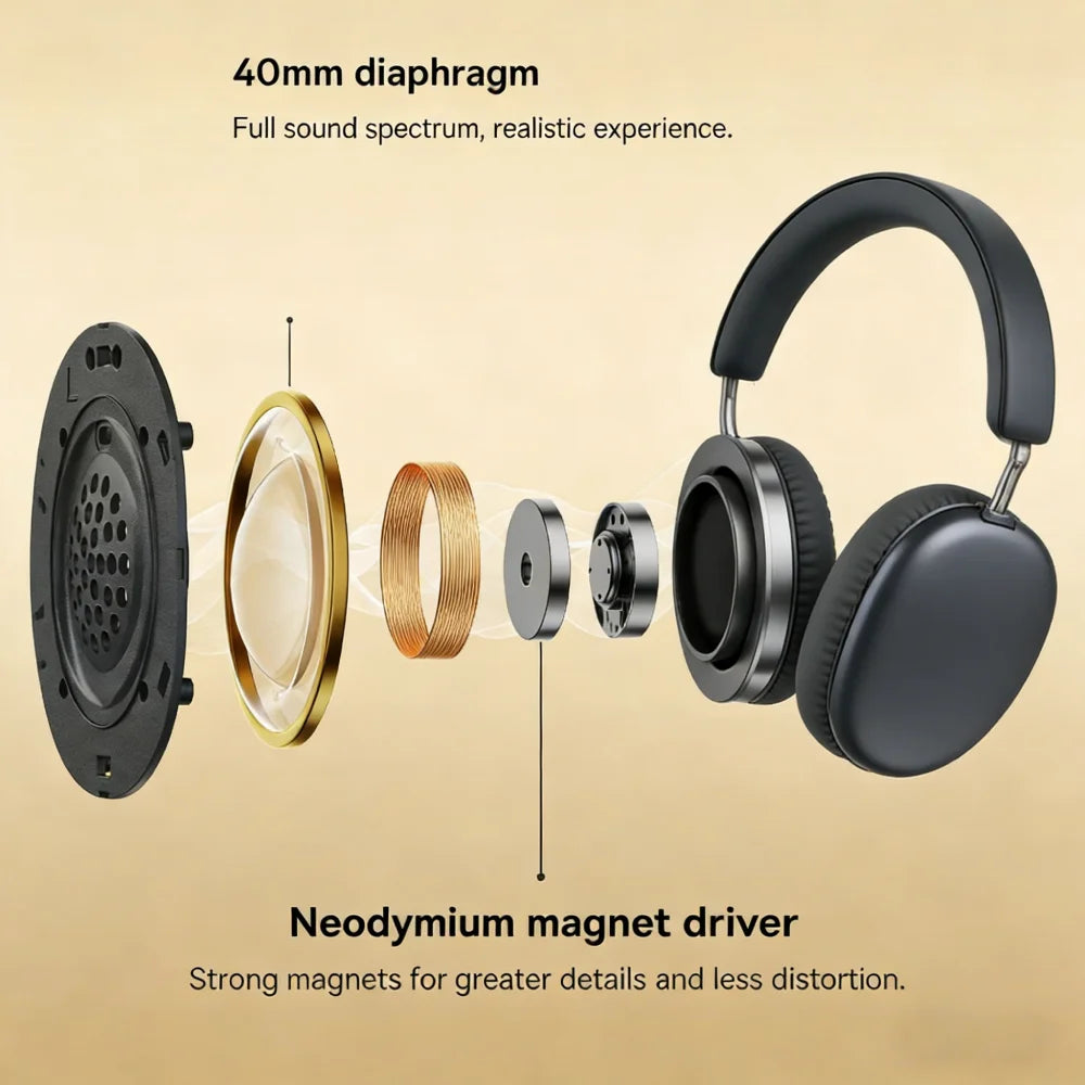 TD-20 Wireless Headphone 3D Spatial Audio Earphone Bluetooth 5.3 Headset 40mm Driver Over Ear Headphone 24H for Mobile Phone PC