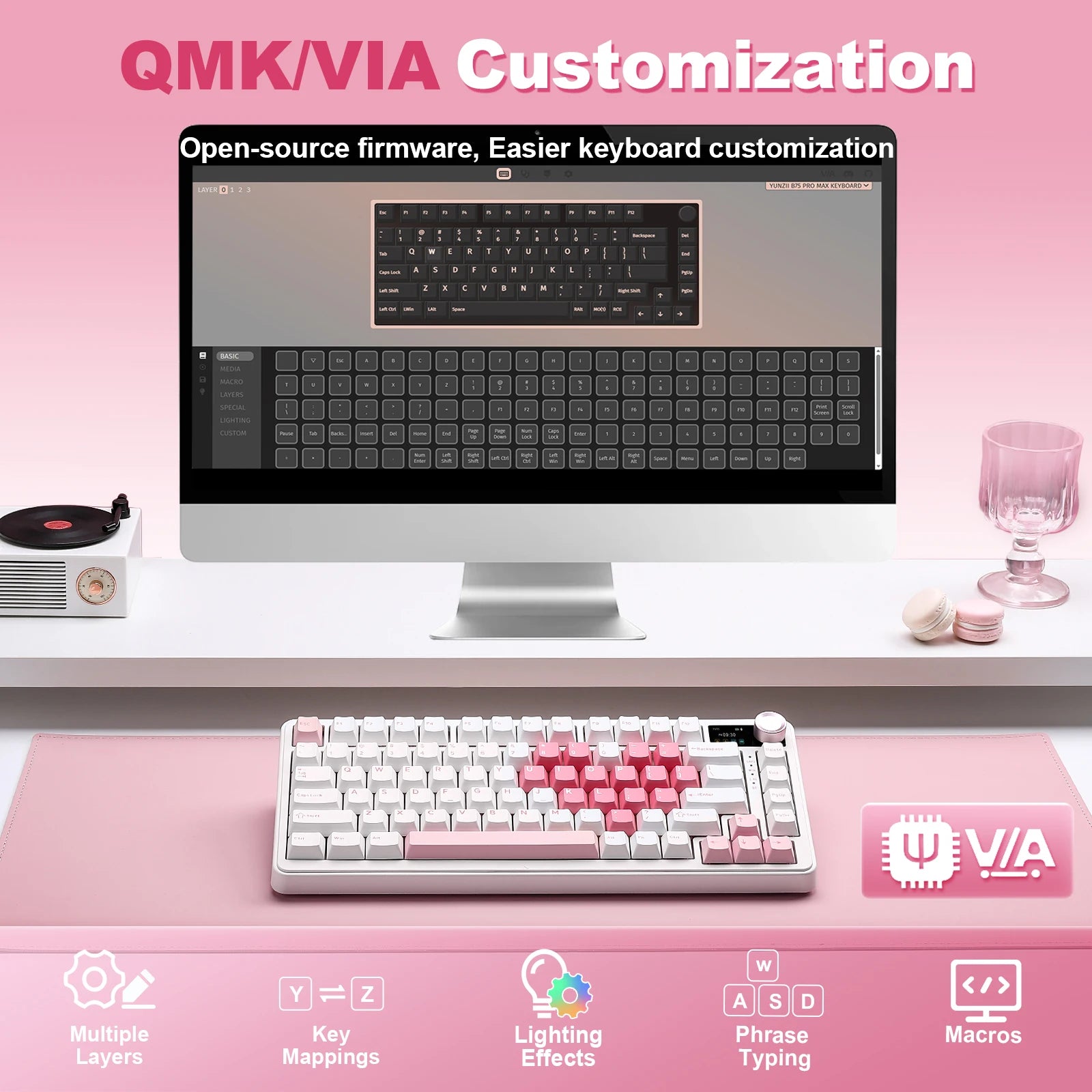 YUNZII B75 PRO MAX Wireless Mechanical Keyboard, QMK/VIA Custom 75% Gaming Keyboard with Screen&Knob, Creamy Sounds for Win/Mac